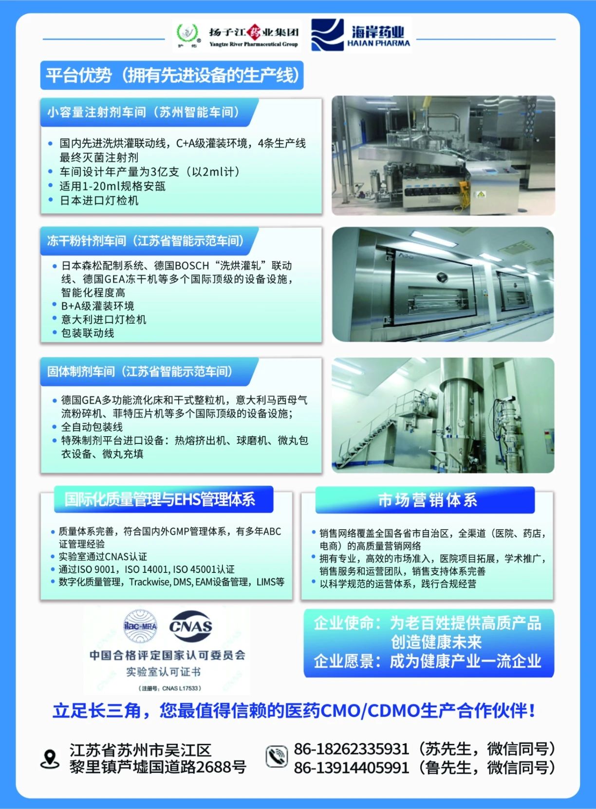 揚(yáng)子江海岸藥業(yè)CMO/CDMO(蘇州)——立足長三角,您最值得信賴的醫(yī)藥生產(chǎn)合作伙伴!