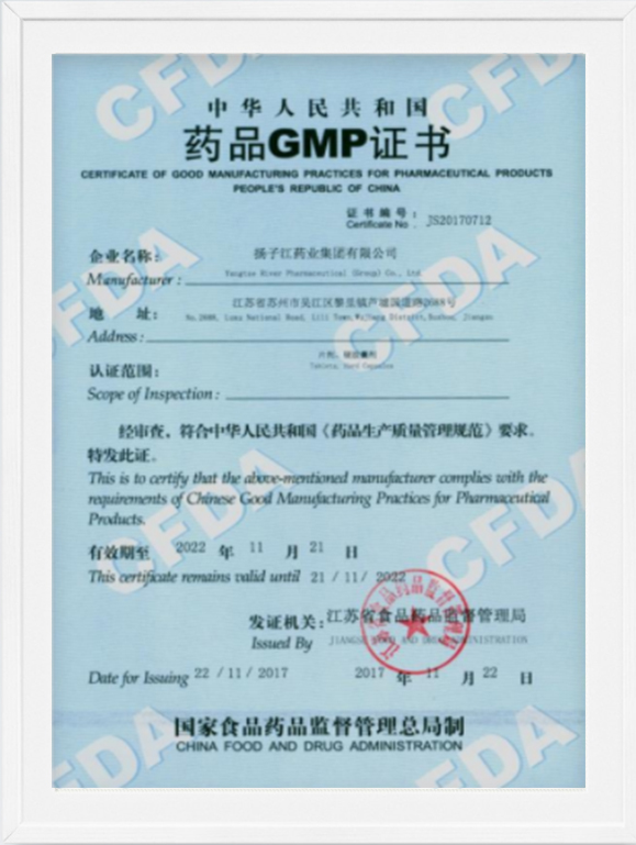 ![]() 固體制劑1號車間 于2017年11月22日取得GMP證書 |